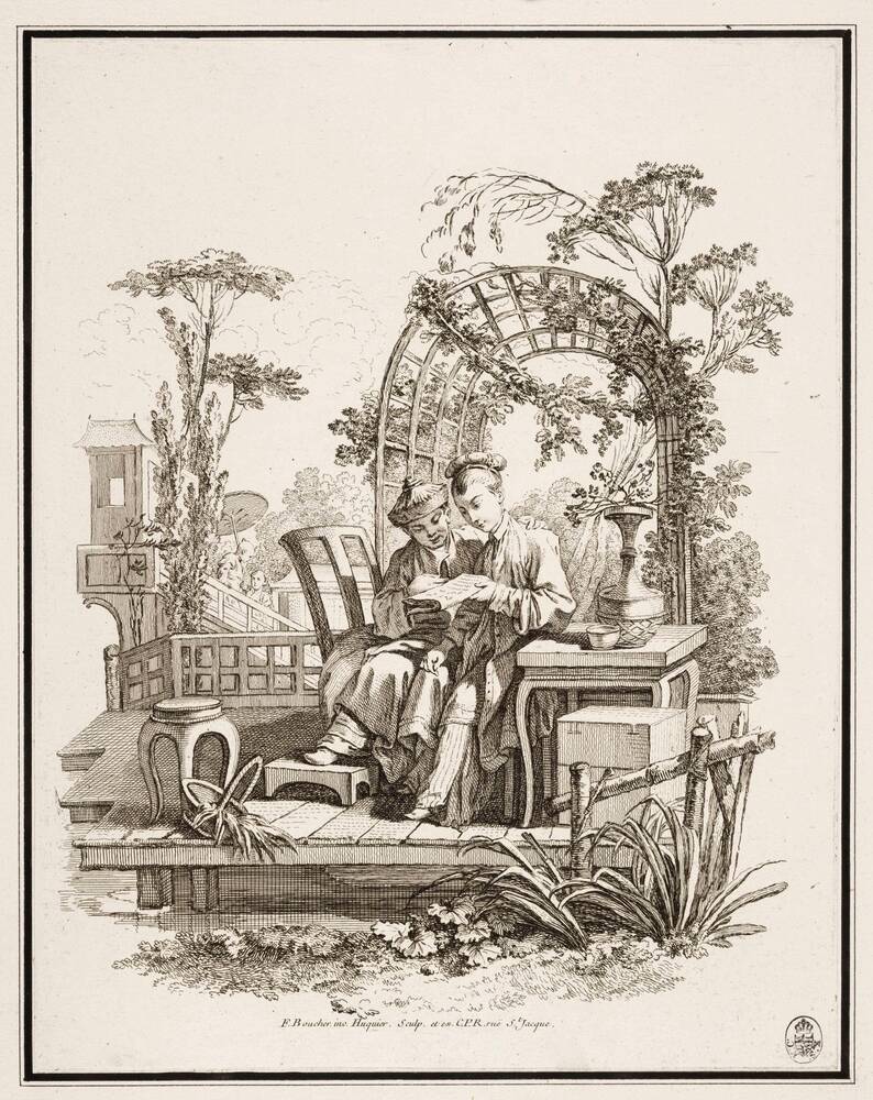 Based on an engraving by Gabriel Huquier after François Boucher.