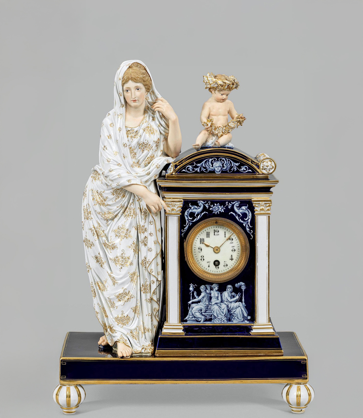 Figural Meissen Clock in French Enamel Style Model Number: M 68 Height: 17″ Category: French Enamel Style