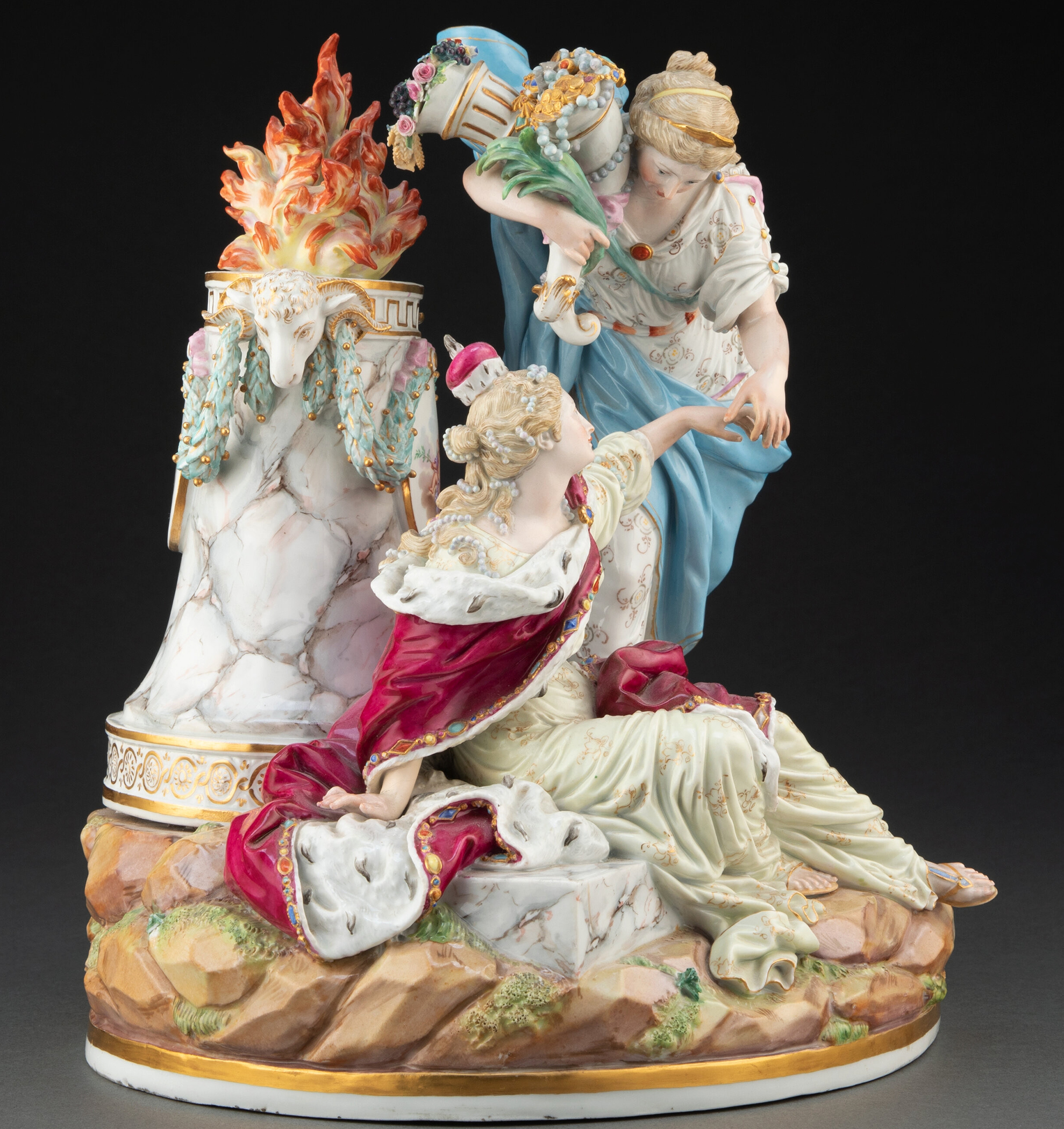 Meissen G31 figural group Peace Model Number: G 31 Modeled c.1780 by Christian Gottfried Juchtzer Size: 15 3/8″ x 12 5/8″ (39 x 32 cm)