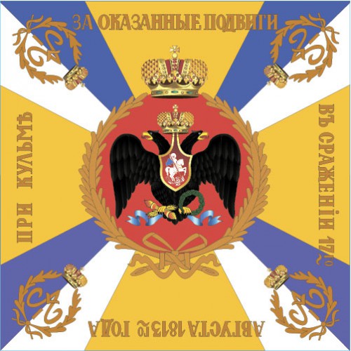 В 1813 году Л-Гв. Семёновскому полку было пожаловано Георгиевское знамя с надписью «За оказанные подвиги в сражении 17-го августа 1813 года при Кульме». Знамя имеет в центре двуглавый орёл в медальоне, жёлтый крест и разноцветные углы с монограммами императора Александра I в углах полотнища.