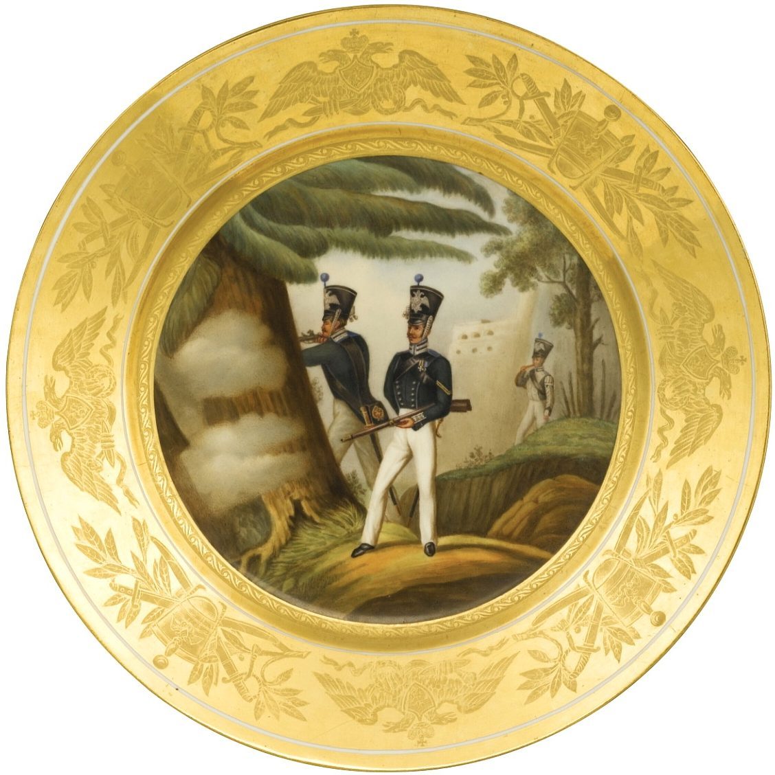Военная тарелка ИФЗ золотой серии “Рядовые Л.Г. Финского Стрелкового батальона” Рядовые Л.Г. Финского Стрелкового батальона Литография Льва Белоусова по рисунку Александра Зауервейда и Саймойло Шифляра. Комплект “Императорская Российская Гвардия” т.I. 1832-1844.