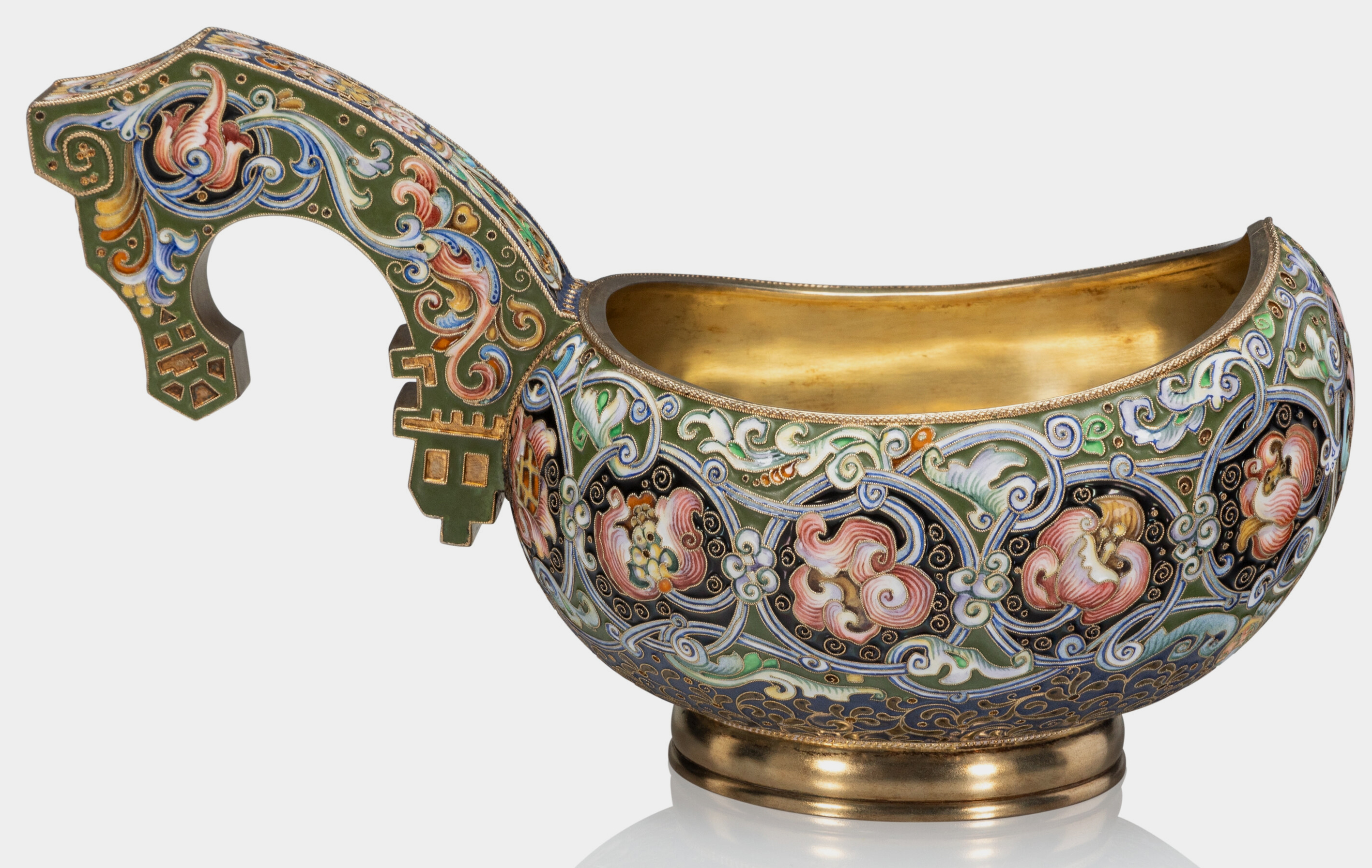Russian silver enamel kovsh by Fedor Ruckert for Faberge Ковши Русское Серебро и Фаберже Фёдор Рюкерт