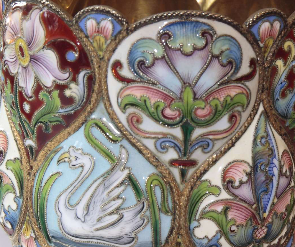 Russian Cloisonne Silver Enamel Tea Glass Holder by Nikolai Alekseev