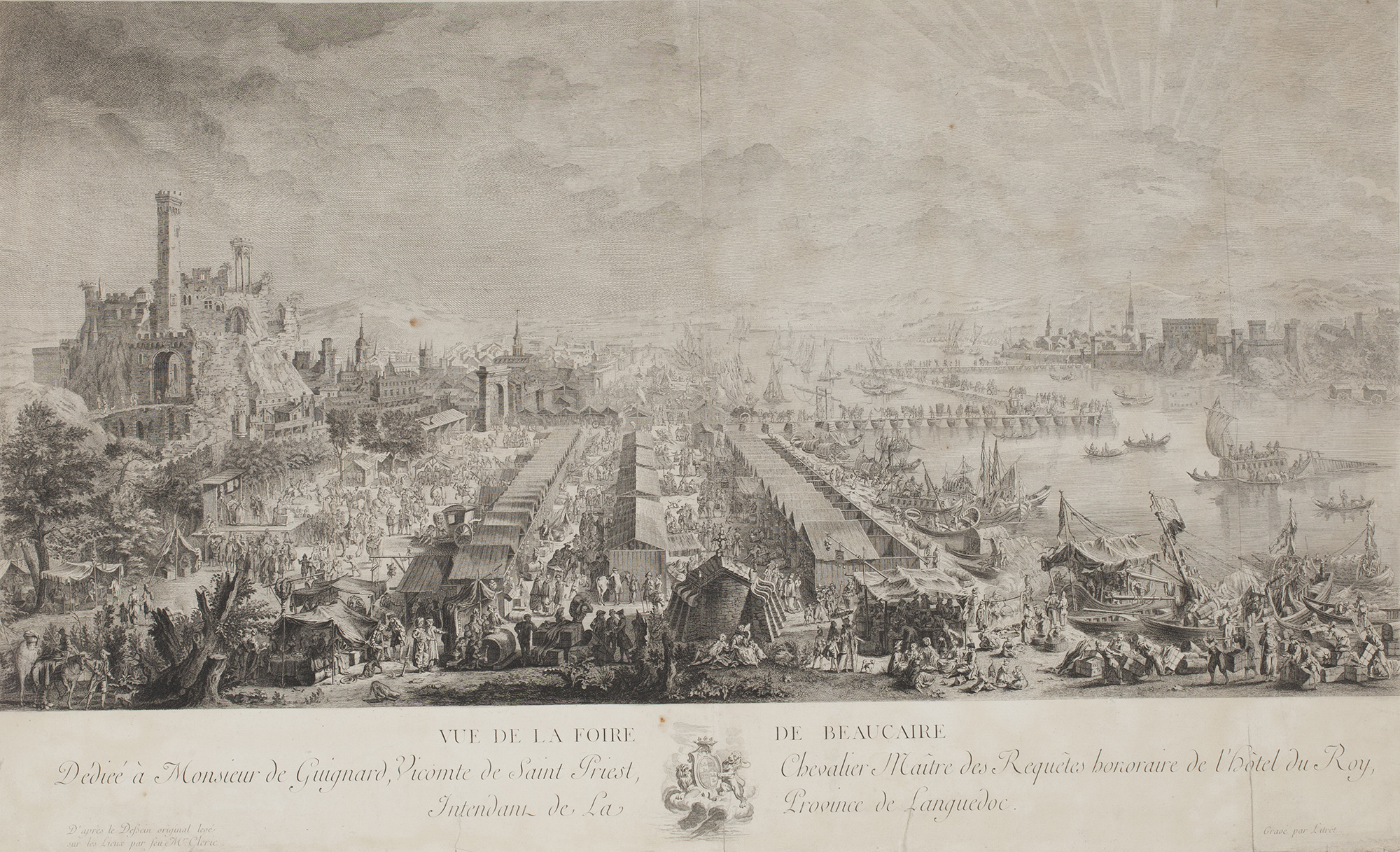 Sevres plate from Departements Service – Gard Département du Gard. Vue de la foire de Beaucaire. After engraving by Claude Antoine Littret (1735 – 1775) of drawing by François Cléric.