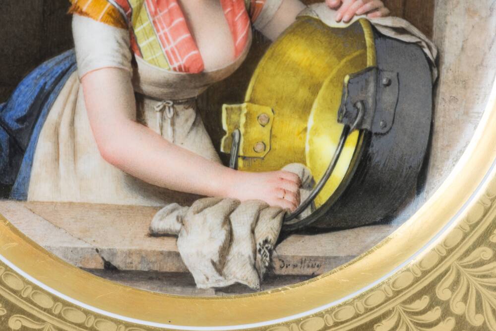 Painted by Martin Drolling or Drölling (1752-1817), a French portrait and genre painter who also worked as a porcelain painter at the Sèvres manufactory between 1802 and 1813. Drolling first studied painting under a smaller artist in Sélestat, but eventually moved to Paris and finished his training at the academy. His works were popular during his lifetime and many were published and popularised as engravings. Several of his paintings are now in the collection of the Louvre.