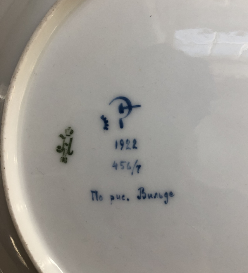 Soviet propaganda porcelain plate “Children” by Rudolf Vilde Тарелка с лозунгом “Спаивают труд и науку дети трудящихся” State Porcelain Factory, St Petersburg – ГФЗ Государственный фарфоровый завод им. Ломоносова, 1920. Автор эскизa декоративного оформления тарелки: Рудольф Вильде Rudolf Vilde (1868-1938)
